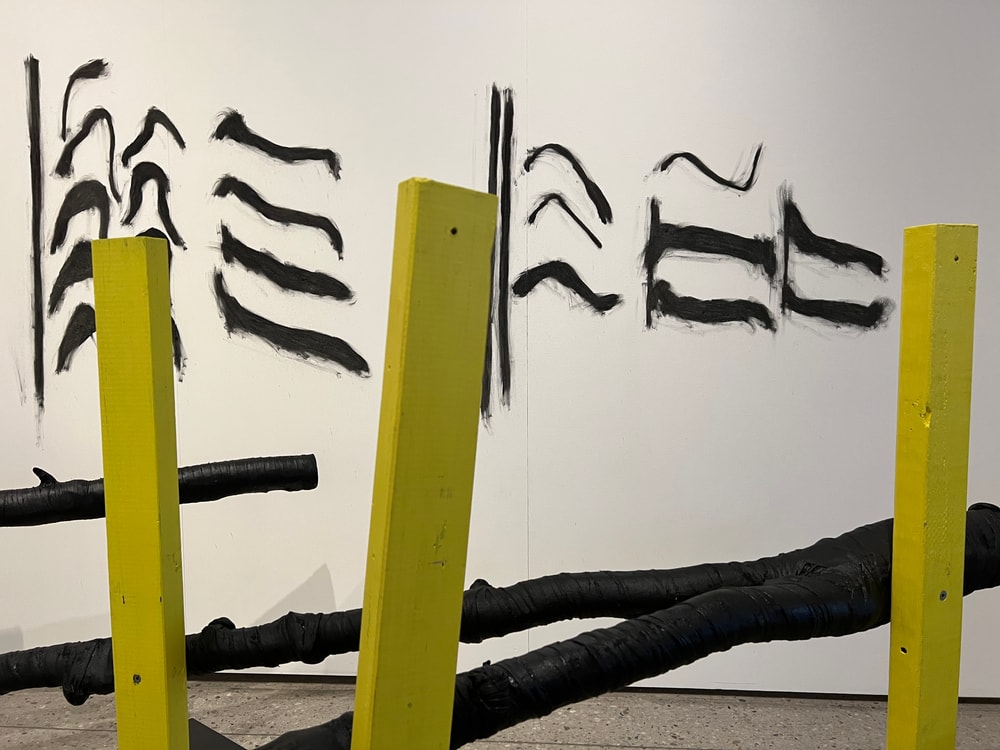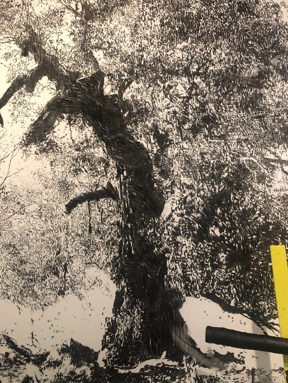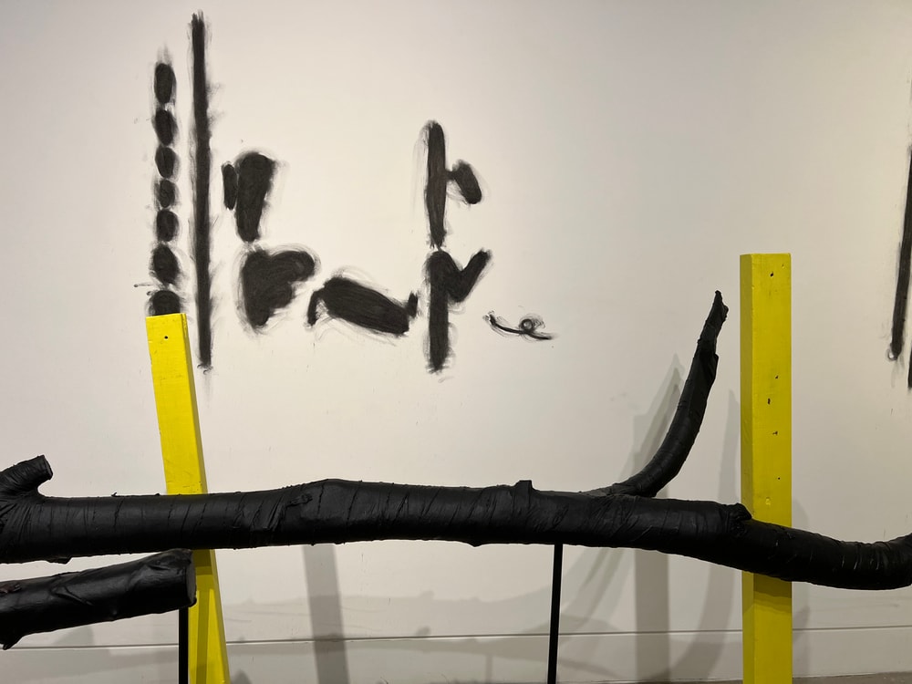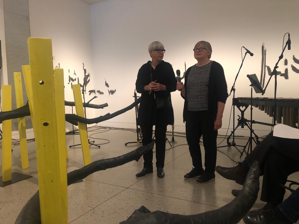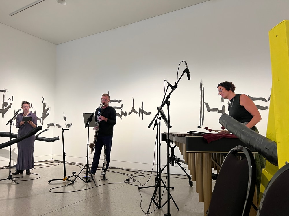 The exhibition incorporates sculptural installation, charcoal wall drawings which are transcriptions of the spectrographs of the birdsong, and a commissioned sound work by Felicity Wilcox titled Call, And?... (a) Response performed in the exhibition by musicians Jane Sheldon (soprano), Claire Edwardes (marimba), and Jason Noble (clarinets).