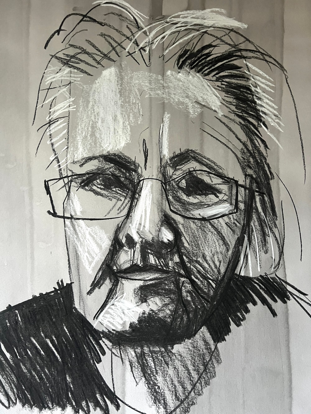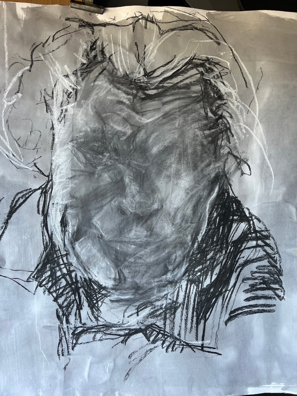 Charcoal, chalk, ink wash on paper. 150x1100cm
