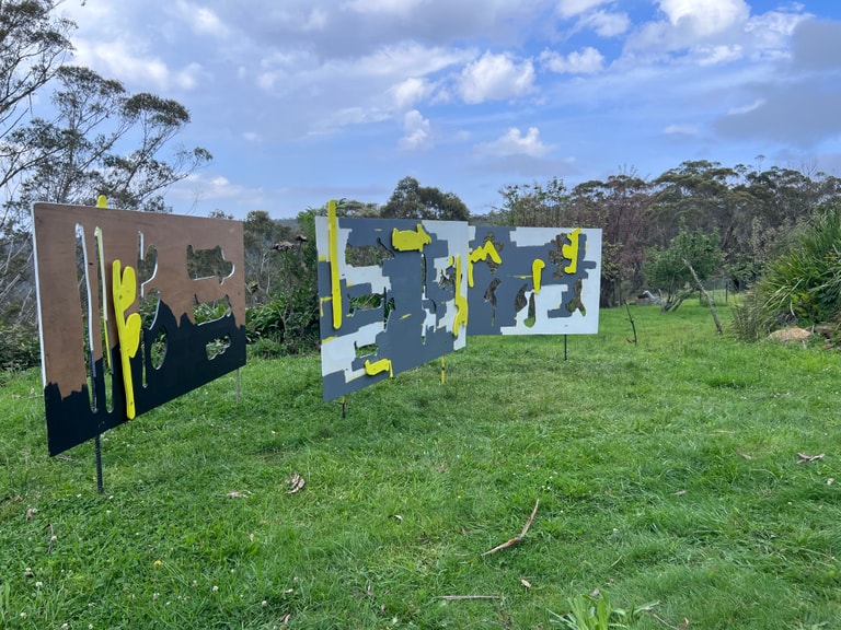 Many species of native fauna are now threatened in the Anthropocene. One is the flagship species the regent honeyeater, whose numbers have plummeted to near extinction. Through billboards of abstracted landscapes with glyphs of birdsong, and field recordings, 'HOLDING…' is a response to loss and absence.